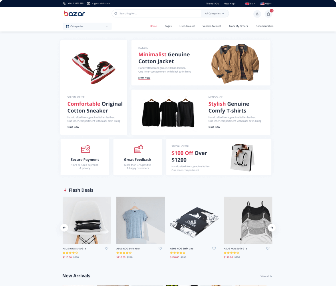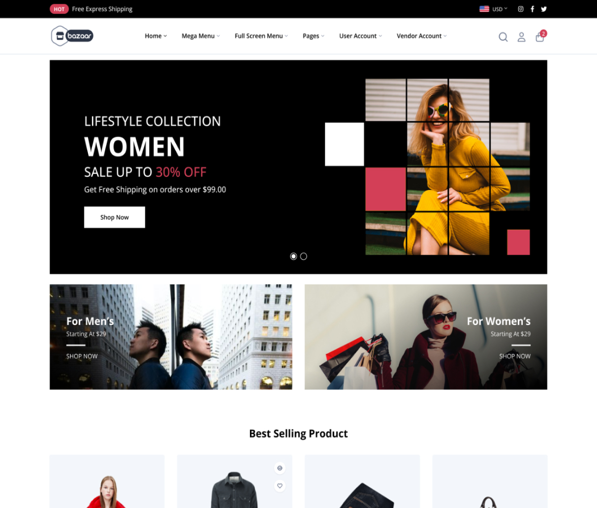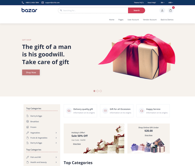 Clean Shop inner pages. Vendor shop, Sale/discount pages, checkout, cart and etc.
