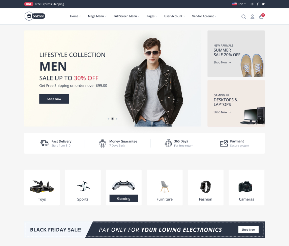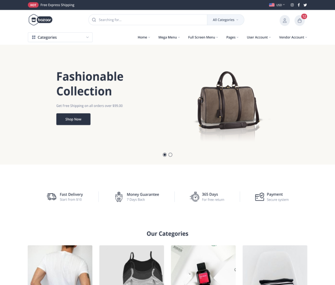 9 Niche shop demos for online store. Super store, Fashion, Electronic, Grocery and etc